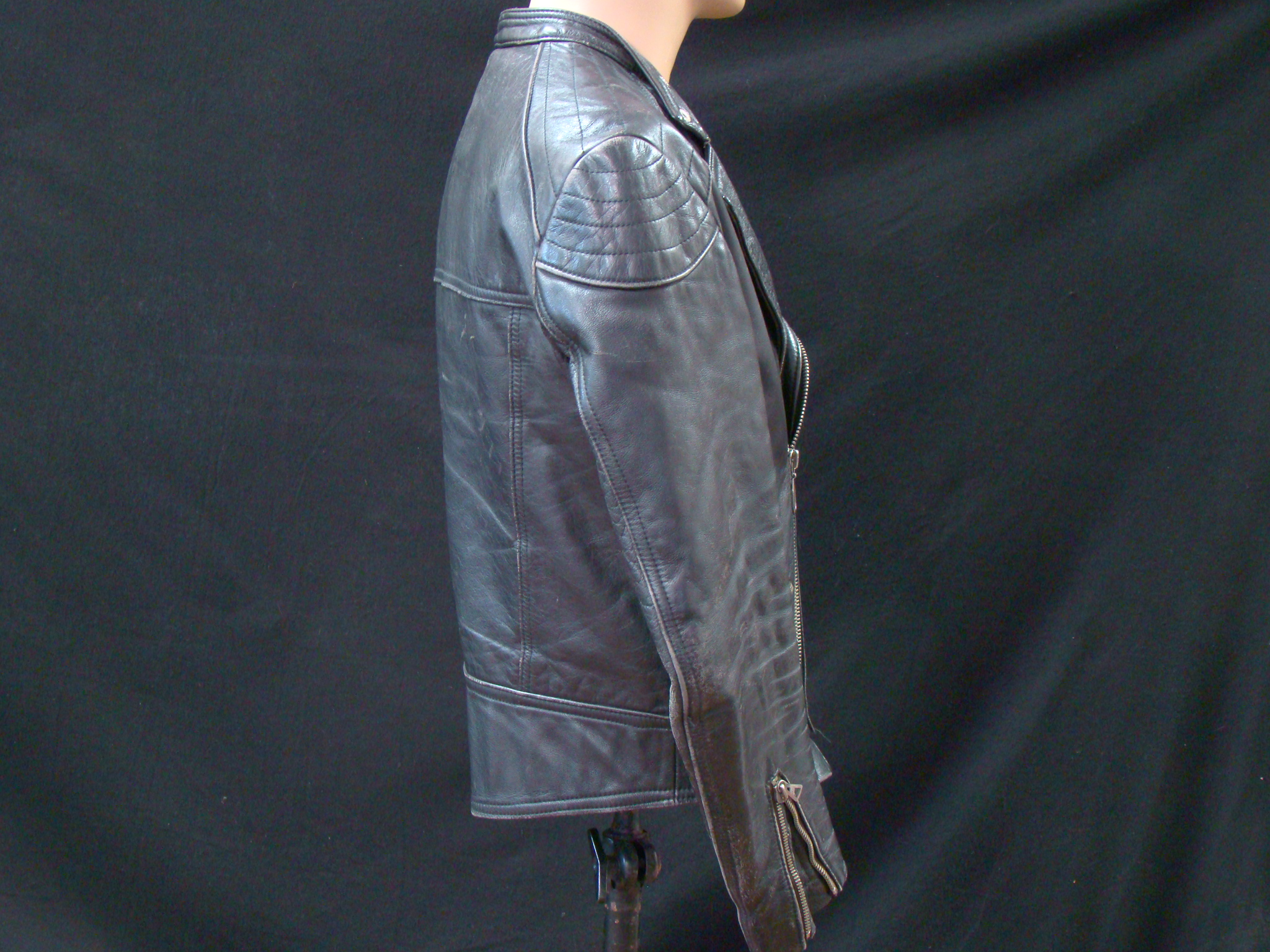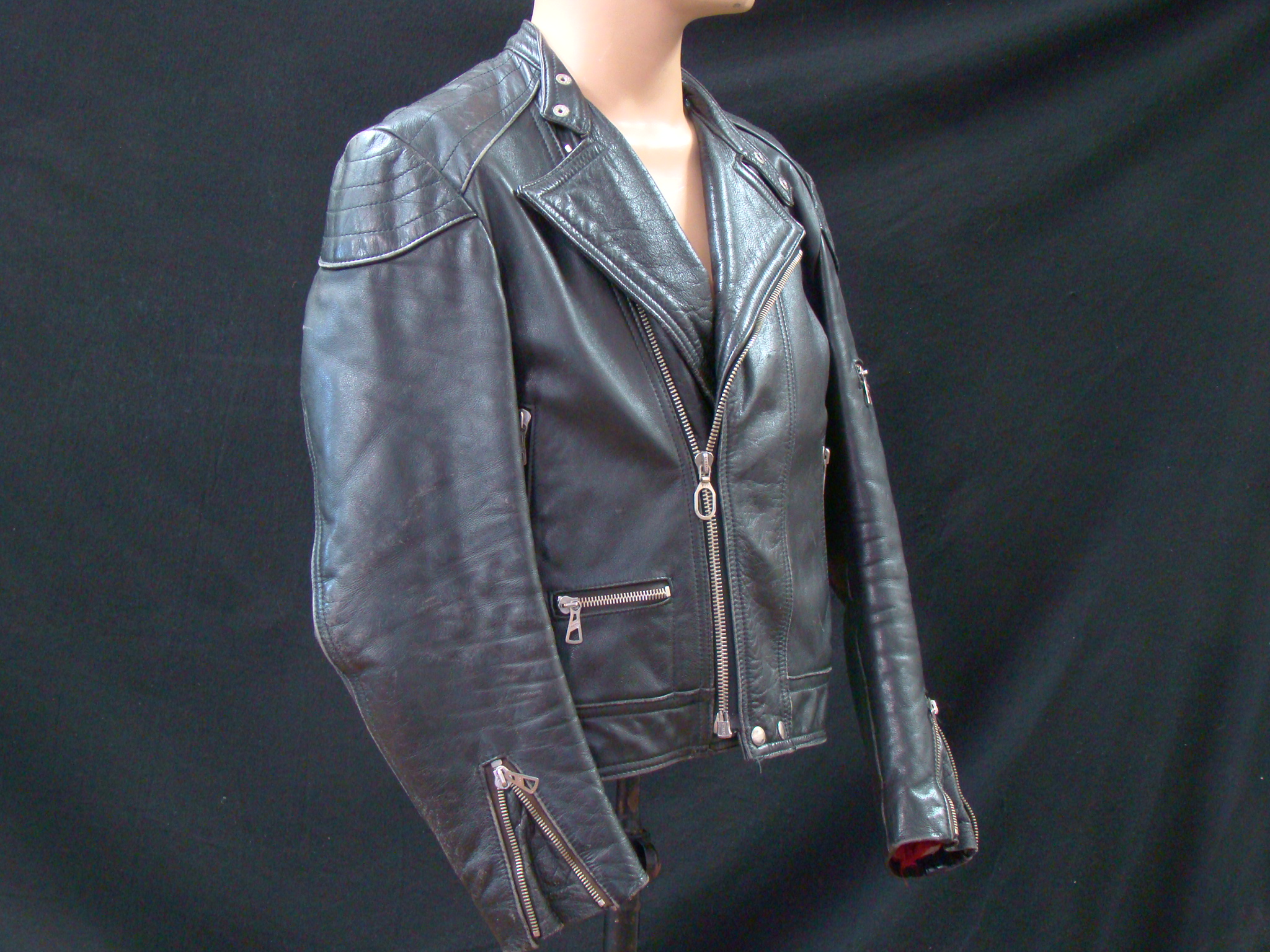“This is a rare & antique used Leather Jacket. This Item was aged for decades. Please expect damages, issues, discoloration and traces from street-racing. It may need TLC, repair and some grease. If you have any minimal doubts, please buy a new throw-away nylon-jacket in your next Shopping-Mall, Thanks for Cooperation”