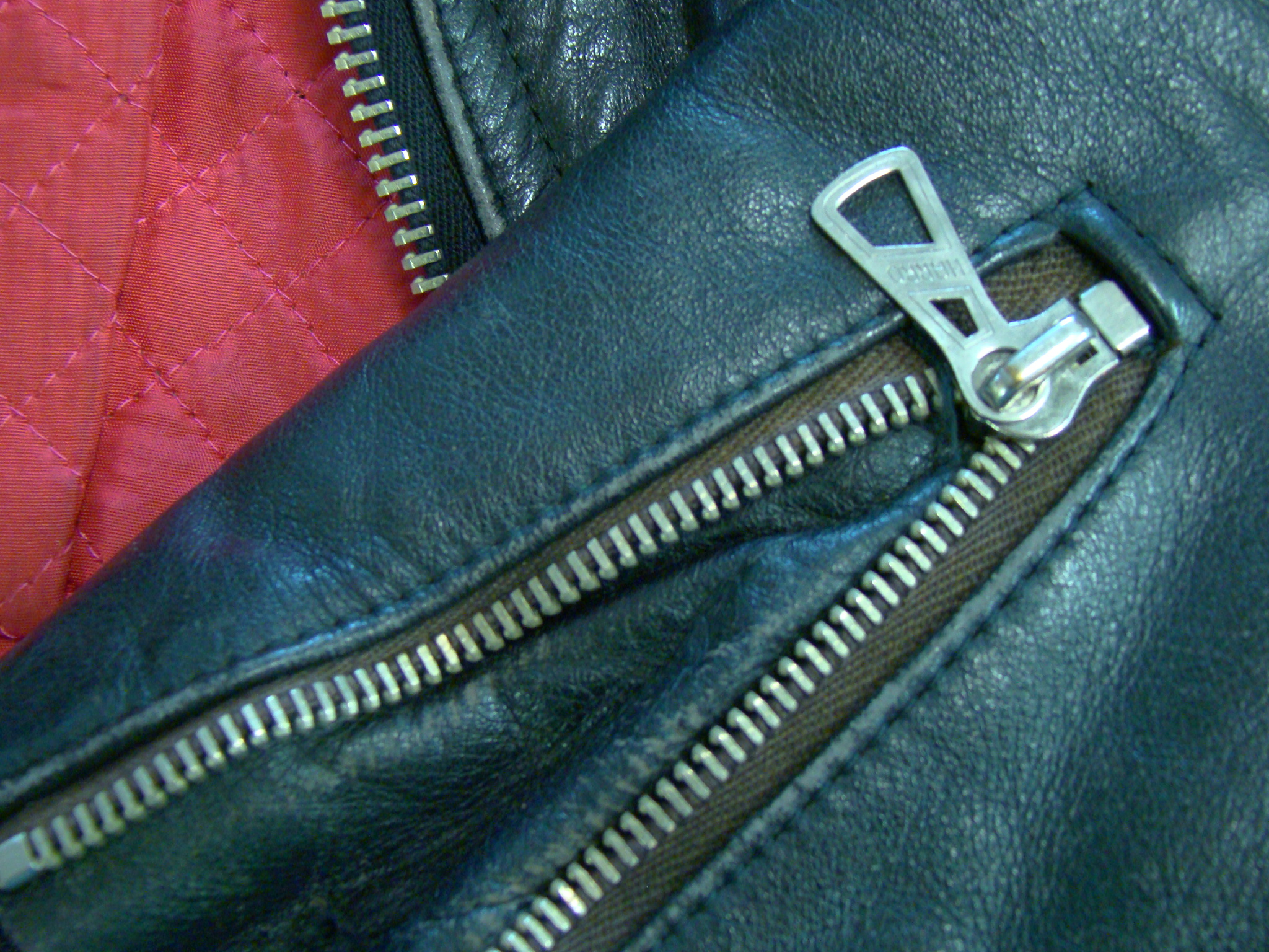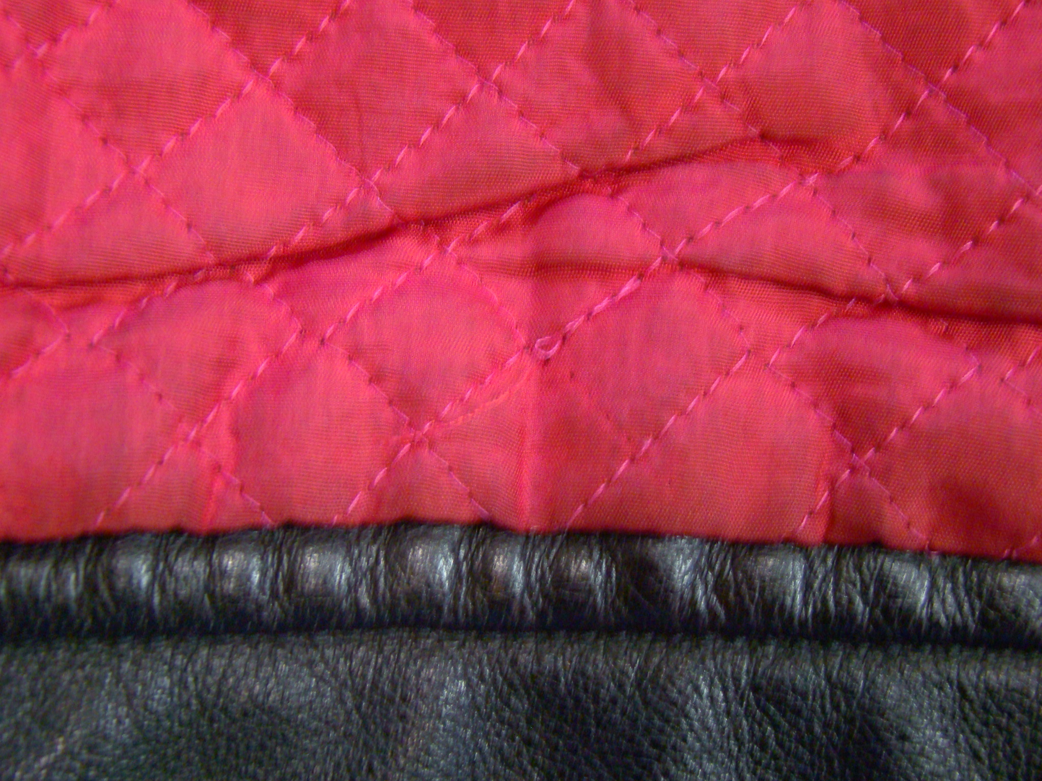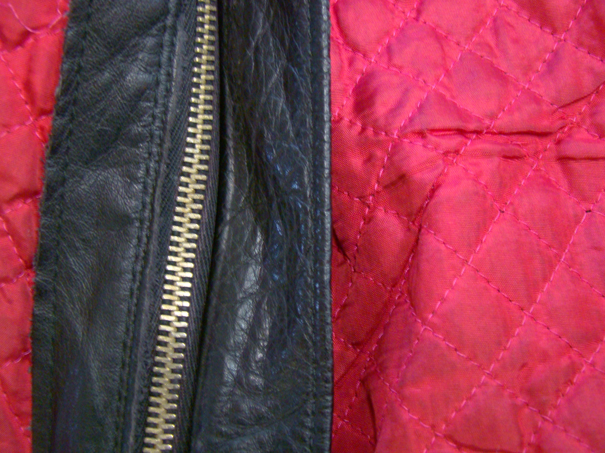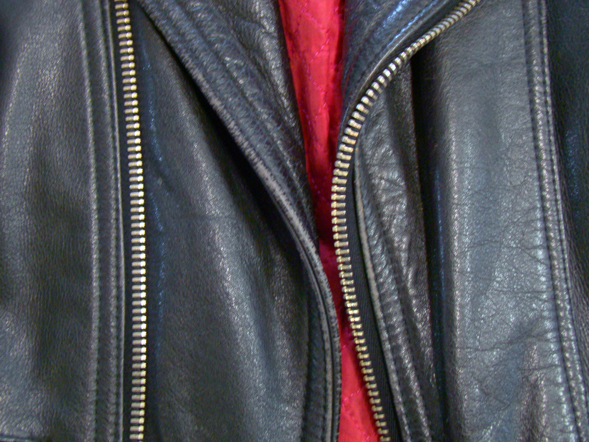 -Pure black heavy duty Motorcycle Leather out / inner red satin-like