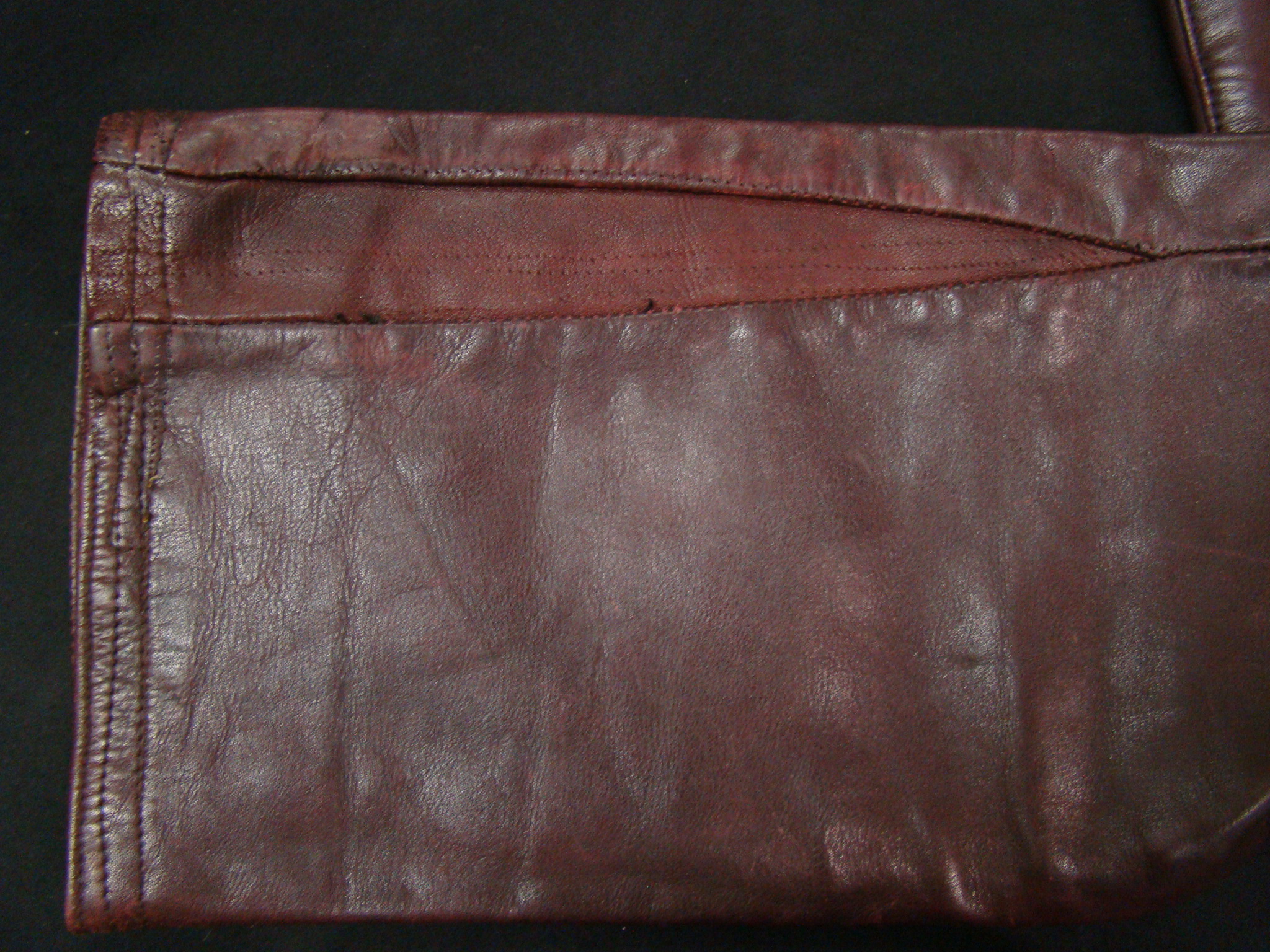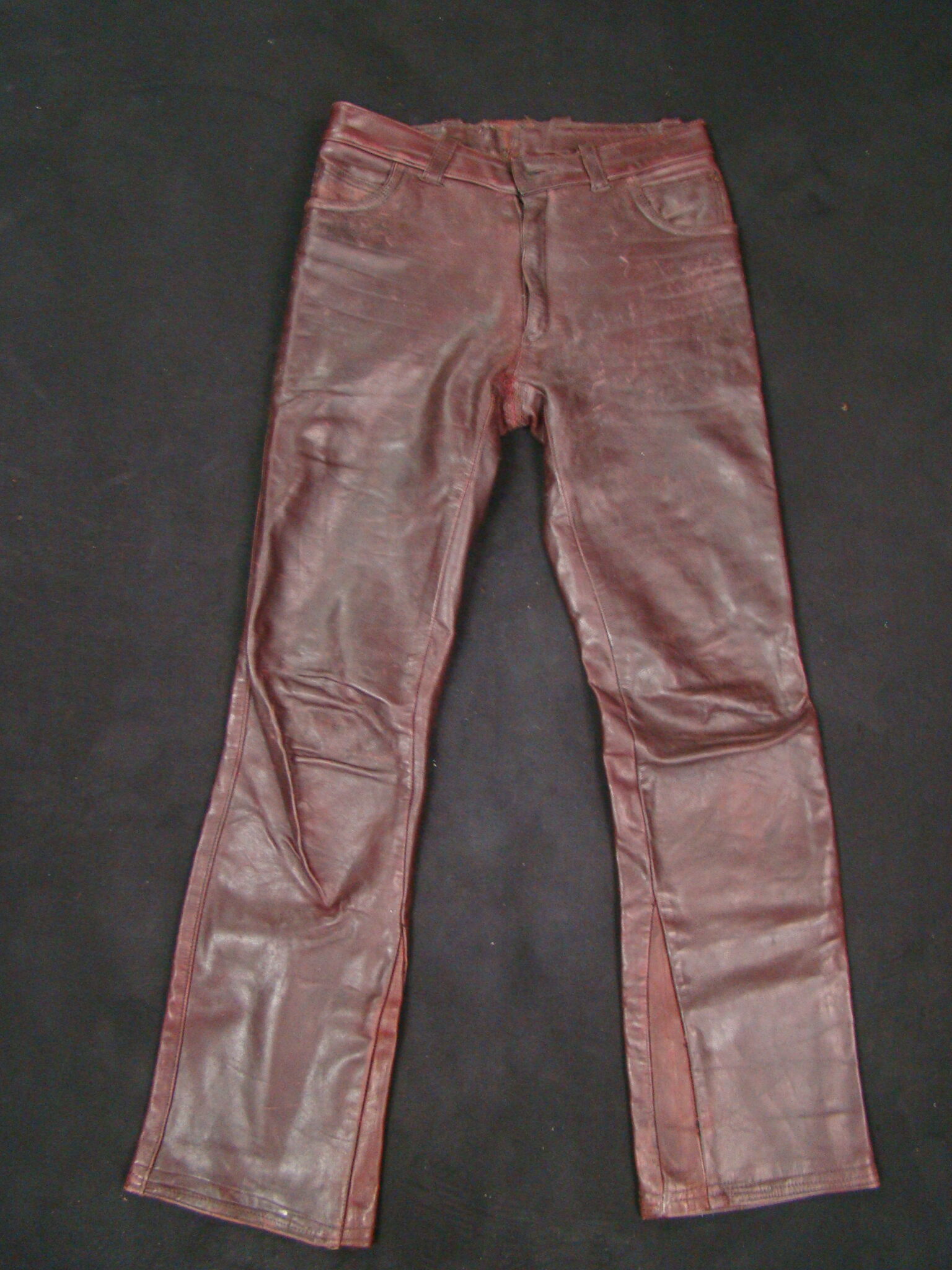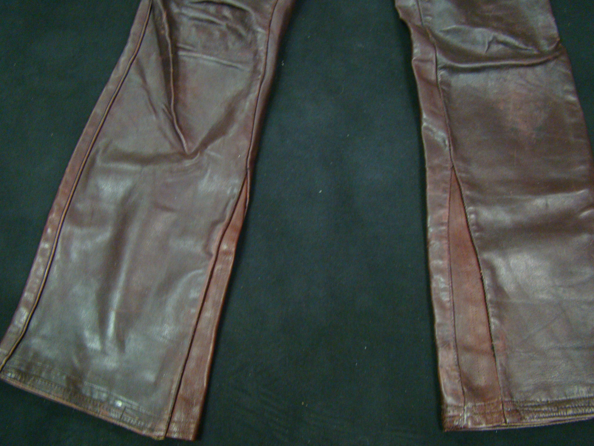 “This is a rare & antique used Leather Pant. This Item was aged for decades. Please expect damages, issues, discoloration and traces from street-racing. It may need TLC, repair and some grease. If you have any minimal doubts, please buy a new throw-away nylon-pant in your next Shopping-Mall, Thanks for Cooperation”