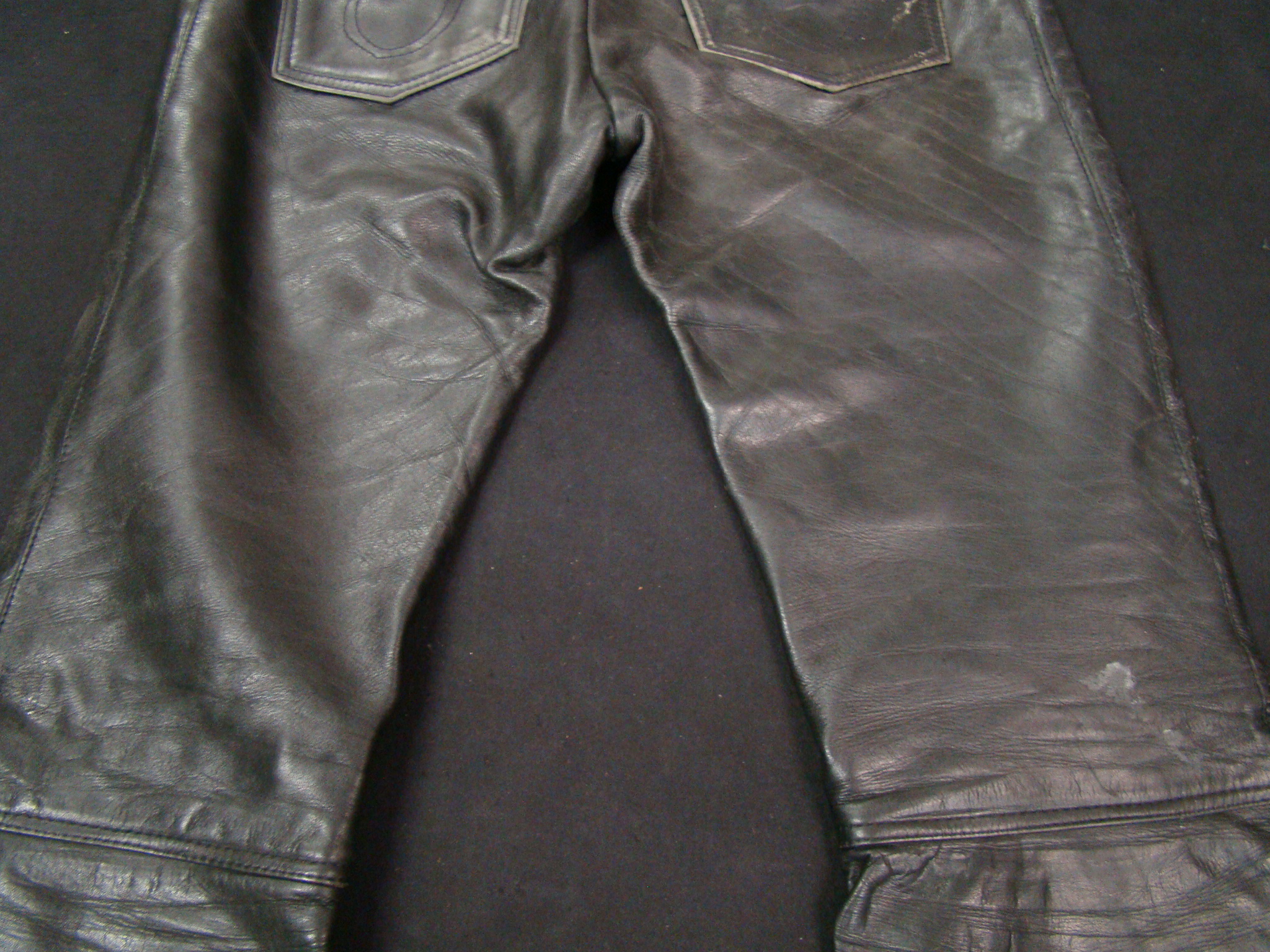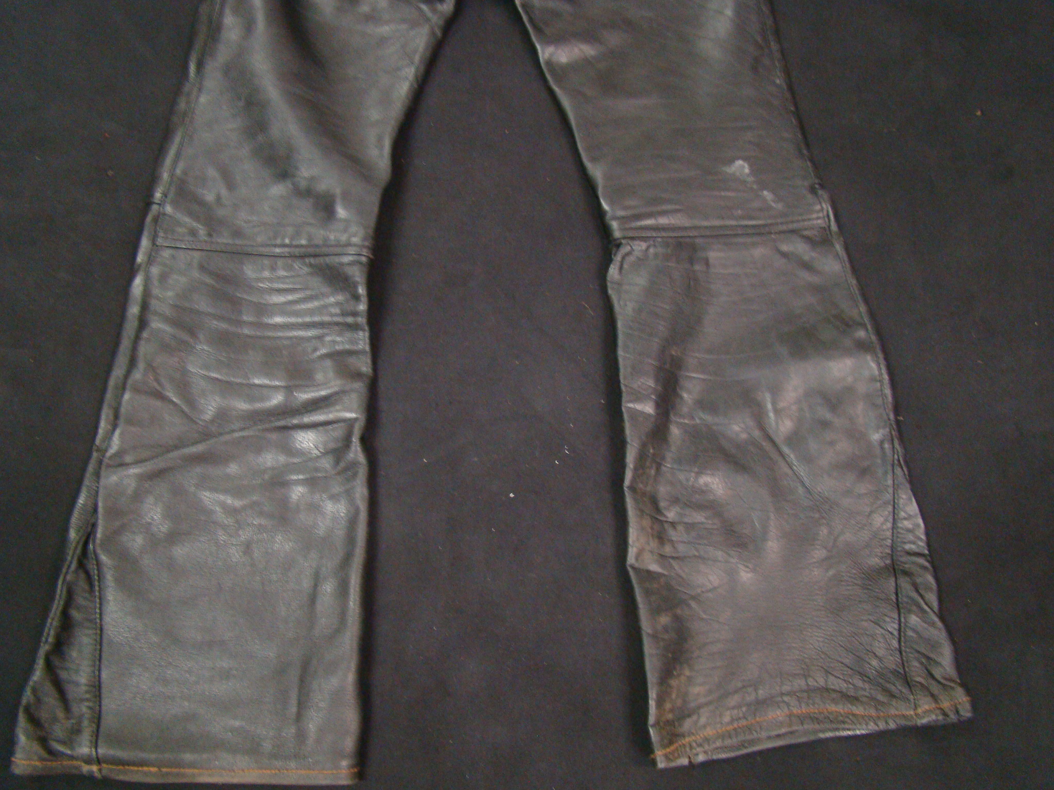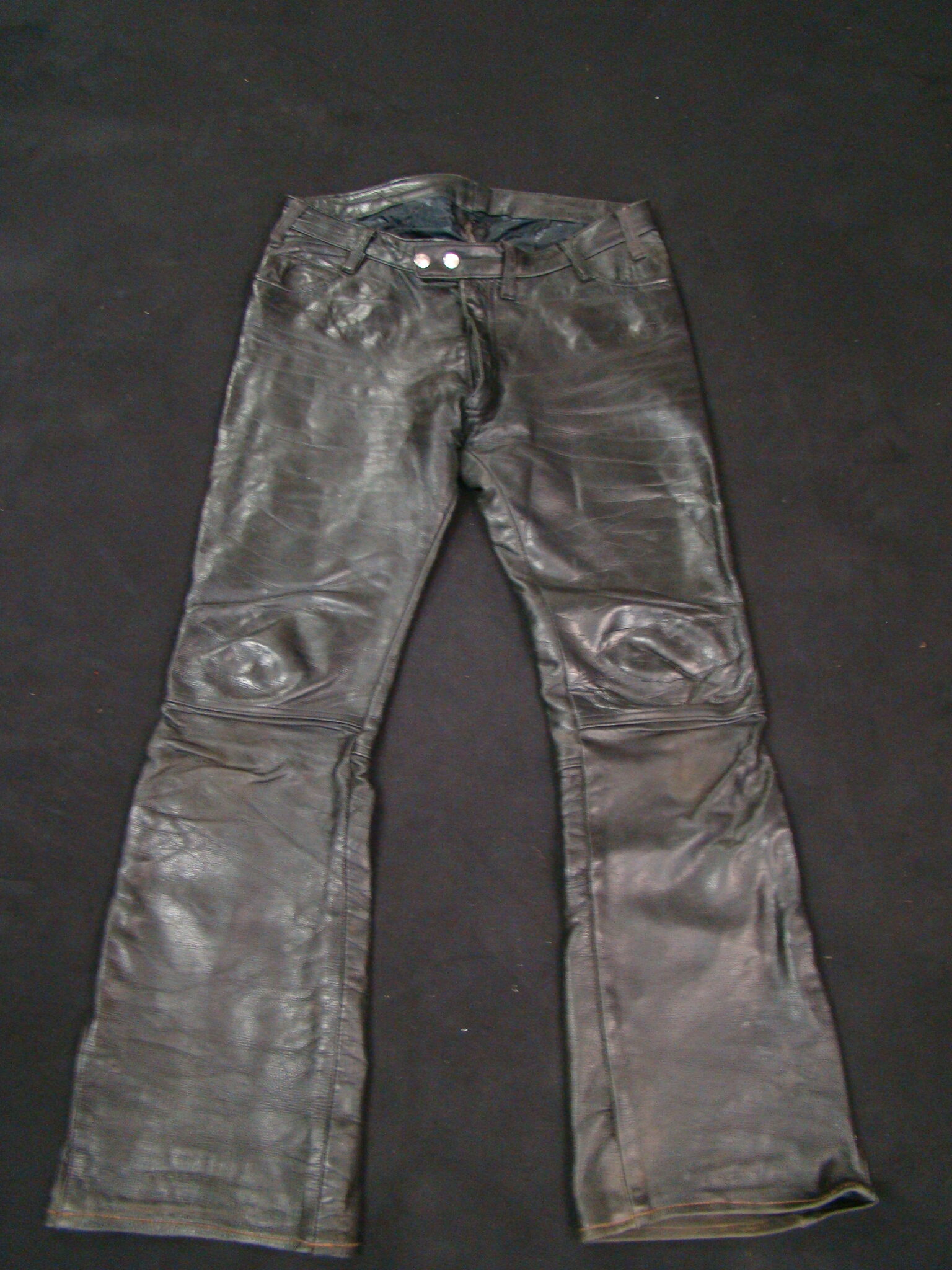 “This is a rare & antique used Leather Pant. This Item was aged for decades. Please expect damages, issues, discoloration and traces from street-racing. It may need TLC, repair and some grease. If you have any minimal doubts, please buy a new throw-away nylon-pant in your next Shopping-Mall, Thanks for Cooperation”