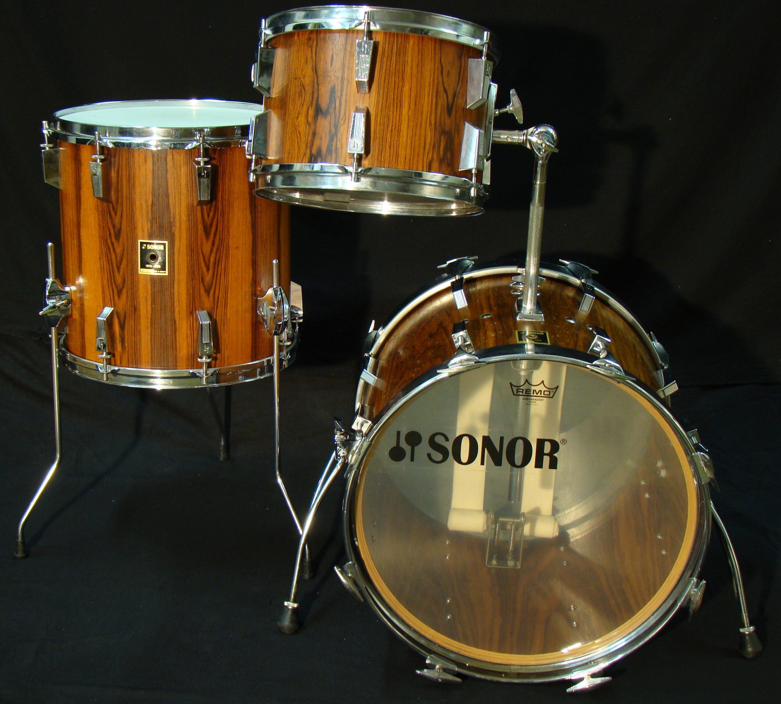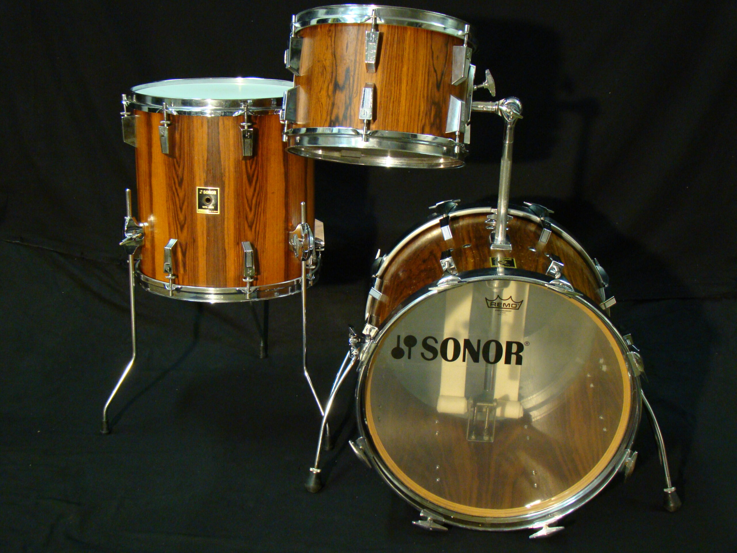 Phonic series are traditional wise the Basement of Success from Sonor, german beech shells, incredible handcrafted in Bad Berleburg, a real million seller. But only a few sets are covered with brazilian rosewood. Here, a rare opportunity to get a Bop configuration incl 18″ bass, 12″ rack and 14″ Floor….
